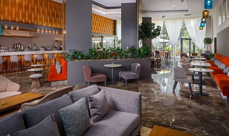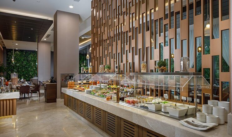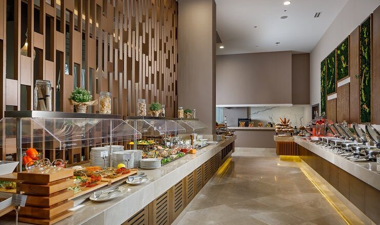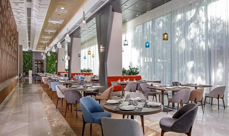 В отельном комплексе работает большое количество ресторанов, кафе, лобби-баров, как в корпусах, так и на морском побережье, и в зонах отдыха на территории.