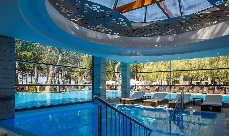 В распоряжении гостей — открытый бассейн, теннисный корт с профессиональным покрытием, различные спортивные площадки и тренажерный зал, где проходят регулярные занятия пилатесом, латиной, аэробикой, йогой. В Wellness-центре отдыхающие могут выбрать различные спа-процедуры и посетить термальный комплекс с сауной, хаммамом, баней и крытым бассейном с морской водой.