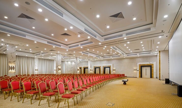 Для проведения различных бизнес-мероприятий предусмотрено несколько переговорных комнат и вместительный конференц-зал. Все пространства отеля оснащены мультимедийной техникой, необходимой конгрессной и офисной мебелью.